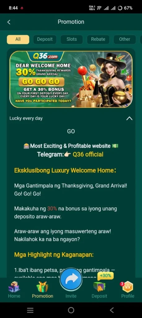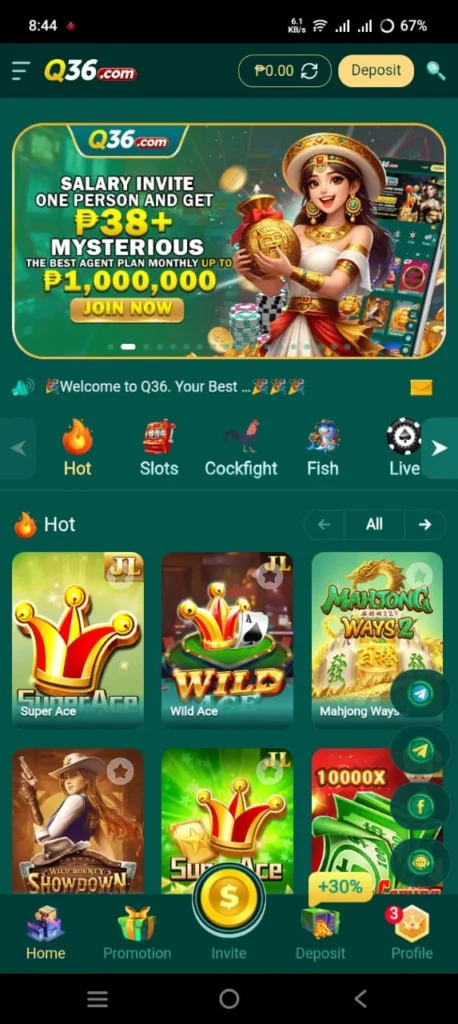 Game categories in the Q36 Casino include Slots, Cockfight, Fish, Live, and many more. These categories make it easy to find the game. It also has a new group of games called HOT. Here, users can find the most famous games on the app. Secondly, the notification bar always updates about the highest wins and losses in the game. The notification bar will help you choose the best game where you can earn more rewards while playing.